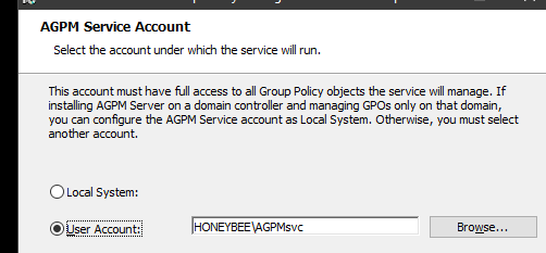 For AGPM service account