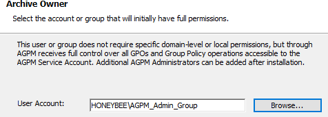 The user or group- owner of archive has full control of all GPO within AGPM through a group (good for providing multiple users admin access or provide domain admins in this group)