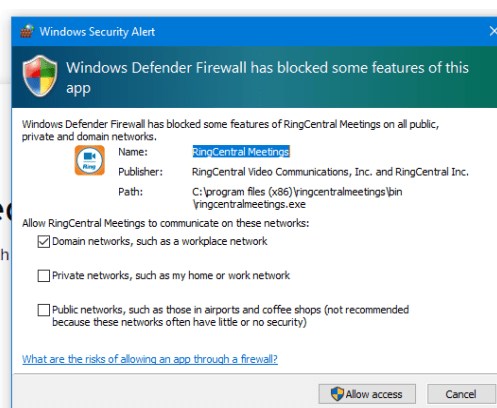 5. For this scenario, we will allow program [Ringcentral meeting] to run.