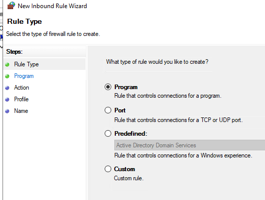 4. There are many options such as allowing a program or port.