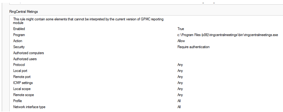 Goal – create exception rules for certain apps. In this scenario,an exception to the Ringcentral Meetings app will be added to be excluded from being flagged. Once the changes are made, there should be no more windows alert when users want to run the application.