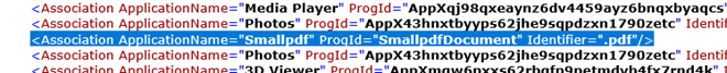 **Note that you need administrator rights to use dism.exe. And to export properly the associations use the same account used in step 3, otherwise you will get a incorrect XML file. Result: now the xml has .PDF file type associated with SmallPDF along with other customization (export only works for new users) and useful for golden image.The exported xml can be placed in a network share and during a task sequence, a dism command can be run to import the AppAssociation.xml during re imaging process. **Use cases: When capturing an image using imaging tools Or reference to xml when putting it in task sequence