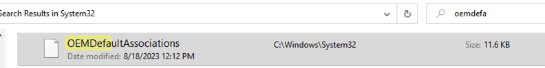 4. Your file will be copied to\Windows\System32 with the following name OEMDefaultAssociations.xml. The image will now read from the OEMDefaultAssociations xml and associate the extension with the appropriate application that has been set.