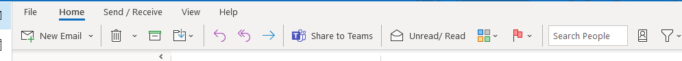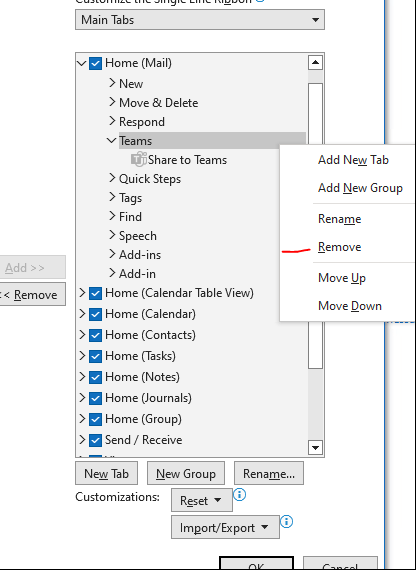 2. In this example, I do not want the button [share to teams] that shows up in outlook simplified ribbon. (The simplified ribbon shows just the icons and not text)