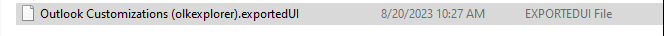 7. The exported file name is called “Outlook Customization (olkexplorer.exportedUI)”. The file then needs to be modified.