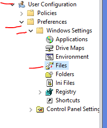 12. The file needs to be copied over to user’s workstation. To proceed, navigate to User configuration > Preferences > windows setting > Files