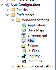 2. Inside the test folder will contain a single file. This test will copy the file to user’s %appdata% folder. Given that we are working with a user’s profile, navigate to GP > User Configuration > Preferences > windows setting > Files.