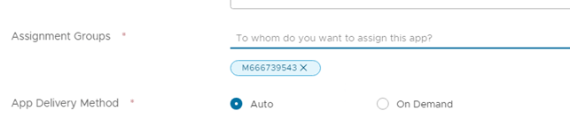 Once the app is selected and details are filled out, proceed with assignment details: (This is where you assign the group created in the first step)