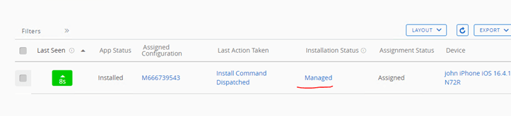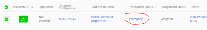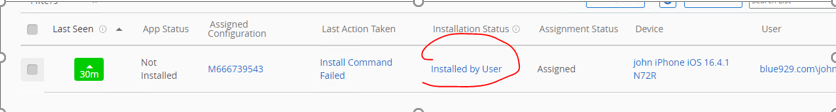 The app will get automatically deployed to the devices listed in the test group in step one. If user already has the app, installation will skip. If not, users will get a prompt that app will download using current app store ID because this setup does not have VPP configured.
