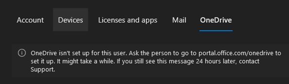 A non-provision setup will look like this under the office 365 admin portal > active user > onedrive tab