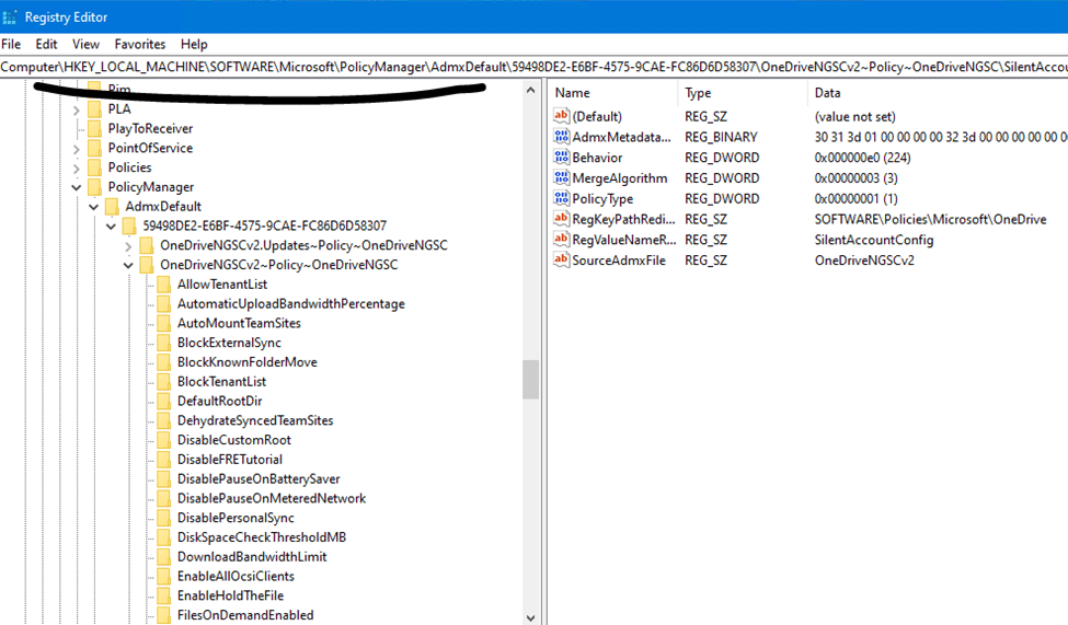 Onedrive configuration policy for Azure AD joined devices or Hybrid Ad joined devices. We will not be using configuration policies deployed by Intune since group policy is already set up for OneDrive KFM. However, it doesn’t hurt to know that it can also be configured from Intune as well. Device > configuration profile > administrative template > Policy located in Computer\HKEY_LOCAL_MACHINE\SOFTWARE\Microsoft\PolicyManager