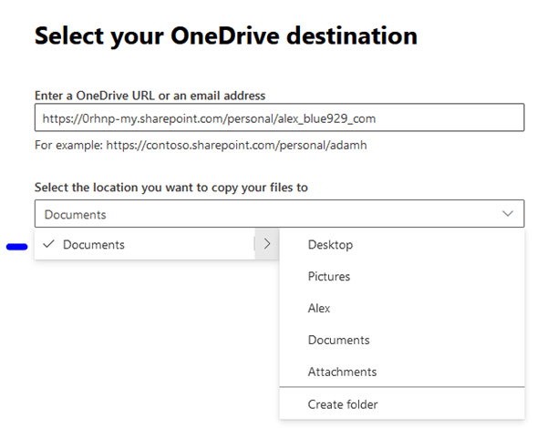 **If the source folder AND OneDrive has same folders [Attachments, Desktop, Documents, Picture] It will NOT create new folder or duplicate copy. Instead, the files will move into the current Desktop/Doc folder in OneDrive!! **If the source location has individual files (.pdf/doc/html,etc), all the files will be copied over as is. I suggest putting all the items from source in a folder before migration.