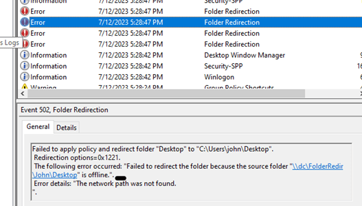 1. The files are only moved to the first machine that the user is signed into. If a user signs into a second machine, error 0x1221 may error with trouble finding network share. 2. Even if the files are moved over successfully,0x1220 may occur. Security ID error prevents the folder from being opened. If this happens, modify owner from system to user.