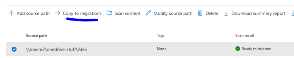 Files share (\\mecm2\OneDrive-Stuff) ——–> AD-Connect (migration agent) ———> OneDrive