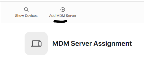 - In ABM, select the company below > preferences > under “Your MDM server” > Click add under MDM server assignment