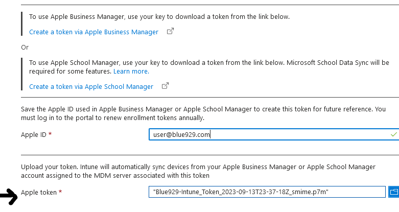 This token lets Intune sync information about ADE devices that your organization owns. It also allows Intune to upload enrollment profiles to Apple and to assign devices to those profiles.