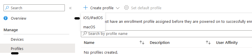 1. From Intune Admin portal , Create a profile under Device Enrollment > Apple Enrollment > Apple Configurator