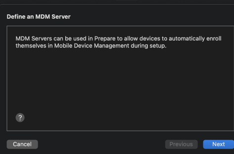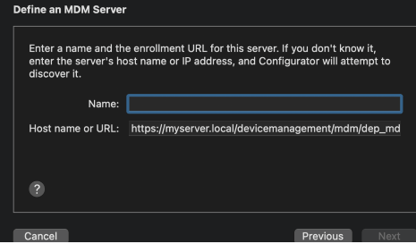 2. Add MDM servers: Click Servers > “+” > Define an MDM server (Add a name and hostname/url)