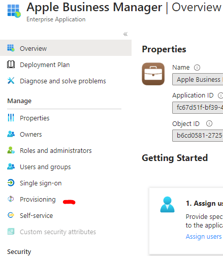 Log in to Azure AD > Enterprise applications > select Apple business manager > provisioning > select provisioning