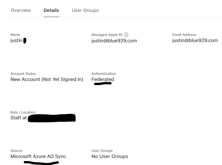 - If using azure ad federation service to sync to apple business manager with AD account, Azure AD will be identity provider when signing into apple services using the account from ABM and there must be no other account name in used with the same domain as Azure.