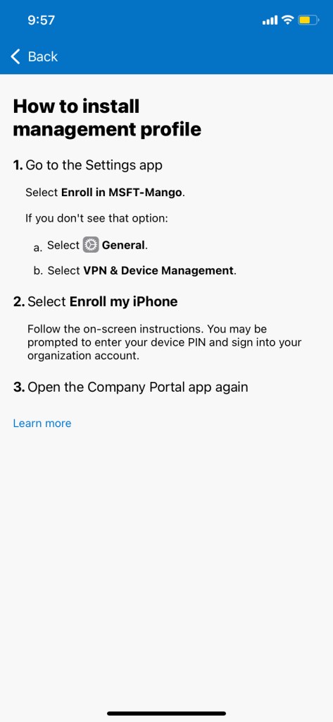 Once Intune and ABM is all configured, it is time to enroll the user using user enrollment.