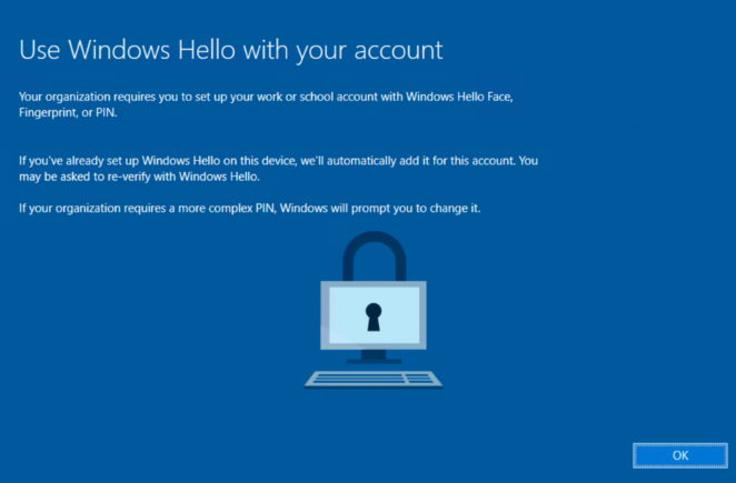 I suggest disabling windows hello for business if it’s not being used since users will keep getting prompt to set it up if its enabled.