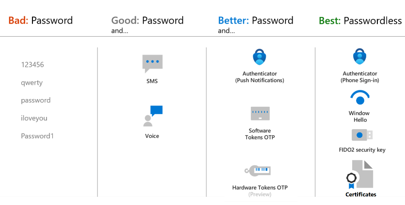 A) FIDO2 security key– Fast Identity online keys provides anti phishing password-less authentication, strongest type of authentication that can be used. Physical device purchased from third party vendor, users insert the usb key or use NFC in order to authenticate and sign in. There is no usage of password for this method. (Not for self service password reset)