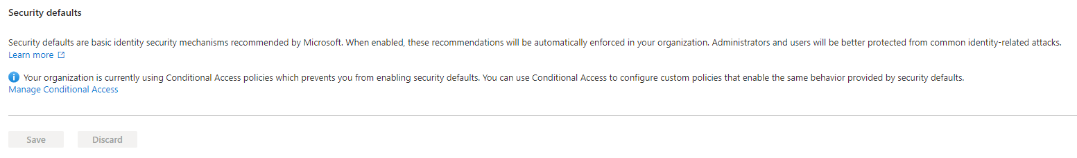 This represents the absolute minimum requirement, and I strongly recommend disabling it specifically for this guide, as we will be focusing on implementing conditional access policies. Conditional access policies provide an elevated level of precise control for tenant administration. This guide will define security configurations customized to meet the organization’s specific needs, rather than following Microsoft’s default template.
