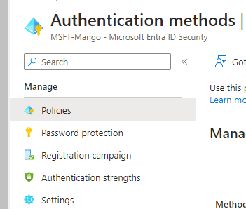 - Navigate to Entra ID portal > Protection > Authentication methods > Settings