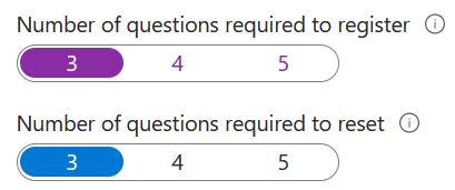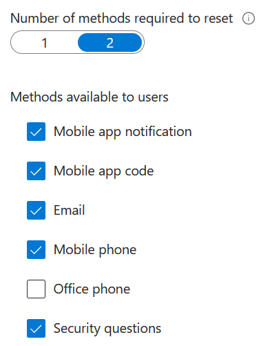 Number of methods required to reset: Recommend at least 2 methods and security questions for users. Select from predefined questions or create custom questions