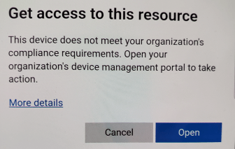 - If you deploy a conditional access policy requiring a mobile device to be compliant, and the device is not enrolled in Intune, the user will be forced to install the company portal app and enroll the device. Once the device is enrolled, the user must bring it into compliance. When this is done, the device will report its compliance status. The user will also see this prompt if they try to access an outlook that has app protection policy on it: