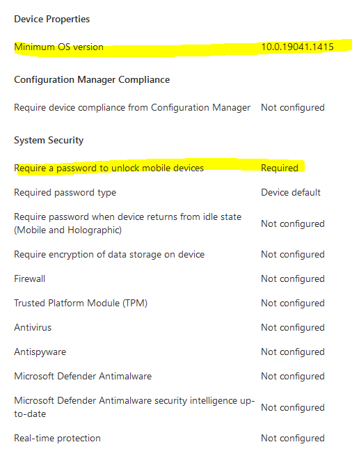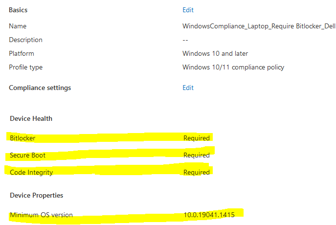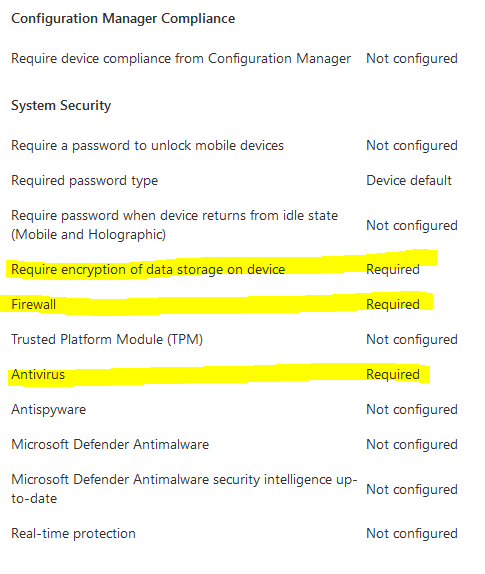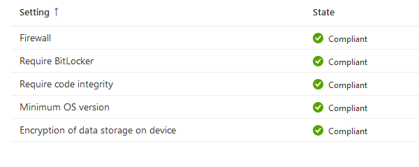 Requirement: Bitlocker, firewall, antivirus, secure boot and minimum OS version.
