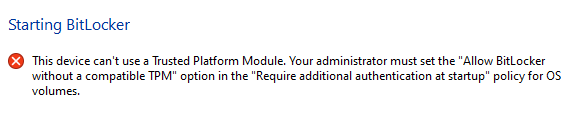 Allow Bitlocker without compatible TPM