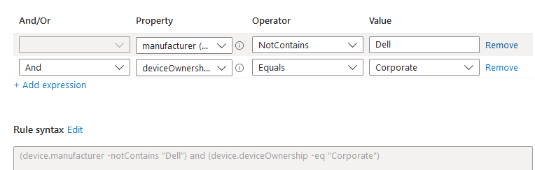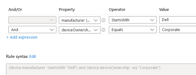 I am looking to create a filter for only Dell devices. When using this filter, I can target the compliance policy to apply only for Dell devices regardless if its towers or laptops.