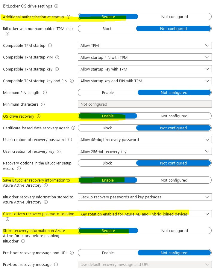 Store recovery information in Azure Active Directory before enabling Bitlocker- Require