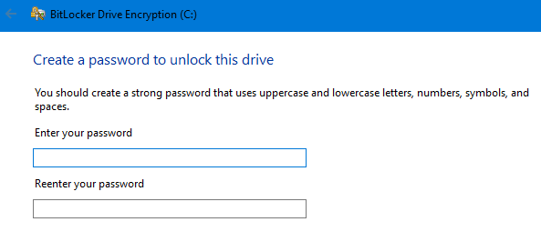 BitLocker Drive Encryption: skip, leave encryption method as default