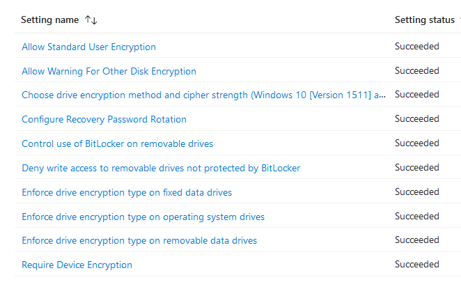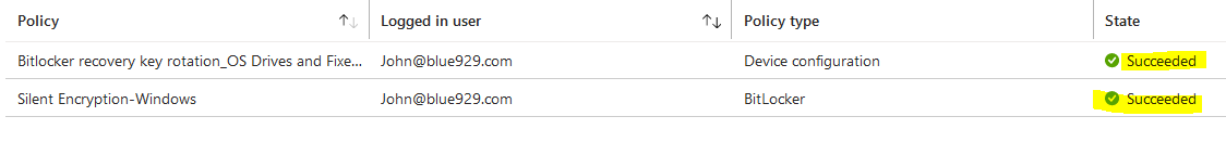 10. If there is multiple bitlocker profile, make sure there is no conflict between endpoint security disk encryption policy and endpoint protection template from device configuration policy