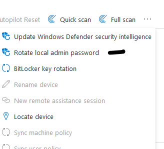 To manually rotate LAPS password: To rotate local admin password > select device > rotate local admin password. Use the new password once device restarts