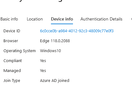 The sign in logs below shows the policy sees the devices and its joined in Azure, it did NOT apply the policy so the user is able to have a persistent session. Once the browser closes and opens back, they are still logged in. The user is signed into Edge and policy applied correctly for Edge.