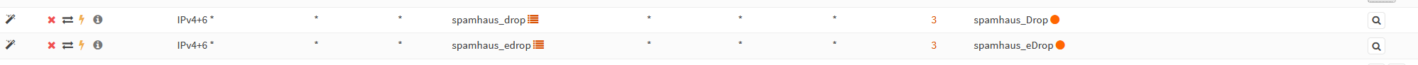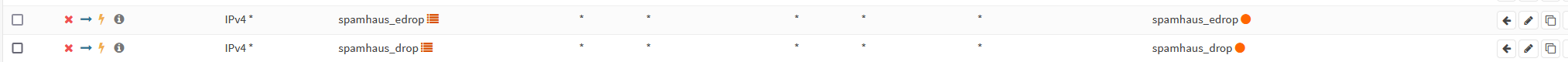 Goal: Apply Spamhaus alias to drop Inbound WAN and Outbound/Inbound LAN traffic on OPNsense from known bad networks.