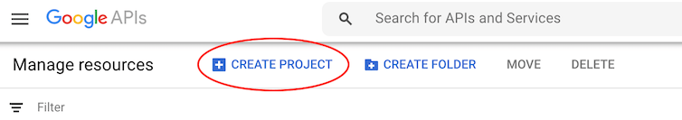 On the “Manage resources” page that appears, click on the + CREATE PROJECT button: