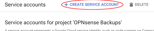 Enter an account name (for example “OPNsense”) and a description (for example “OPNsense Backups service account”), then click the CREATE button: