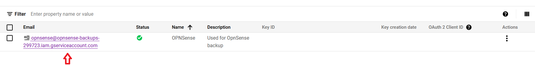 Write down the Unique ID of the Service Account. This ID will be your Client-ID in the OPNSense Google Drive backup: