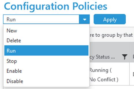 8. To trigger manually > Select Run and hit apply under configuration policies. Once it finishes processing, an verification email will be sent.