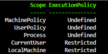 ○ If ALL of the scope are [Undefined], then the default execution policy will become Restricted
