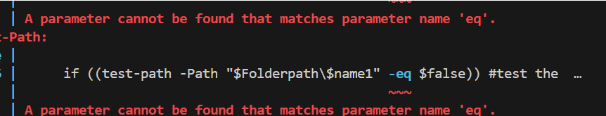 Resolution: It is missing a parentheses to wrap the test-path parameter. Modify it to (Test-Path -Path “xx”)-eq $false