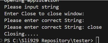 Example: If the user input is NOT “close”, It will keep asking “Please enter correct string”