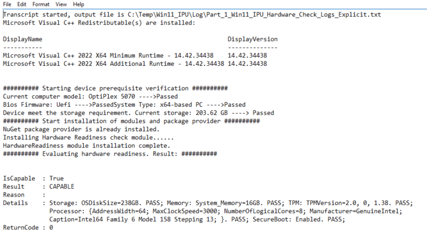 Start-Transcript -Path "C:\Temp\Win11_IPU\Log\Part_1_Win11_IPU_Hardware_Check_Logs_Explicit.txt" -Force -IncludeInvocationHeader