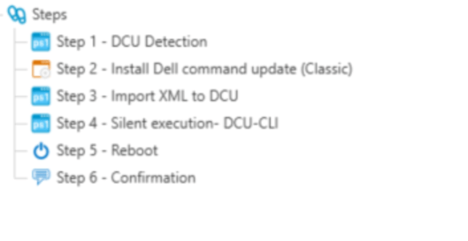 Note that the process uses multiple script bundled into a single package as I prefer to have some version control on the dell command update.