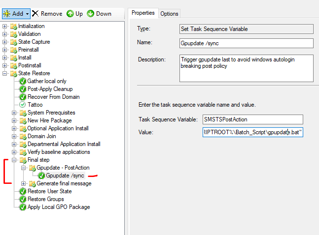 Task sequence variable: SMSTSPostAction